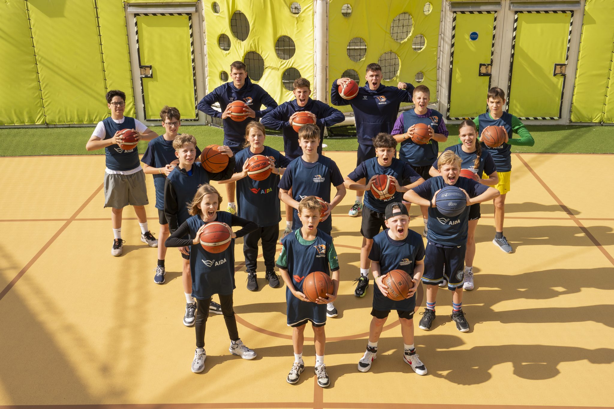 AIDA Cruises bietet in Zusammenarbeit mit den Rostock Seawolves im Sommer 2025 erneut zwei Basketballcamps auf hoher See an. An Bord der AIDAnova haben Kinder und Jugendliche im Alter von zehn bis 14 Jahren die Möglichkeit, ihre Basketballfähigkeiten zu verbessern.