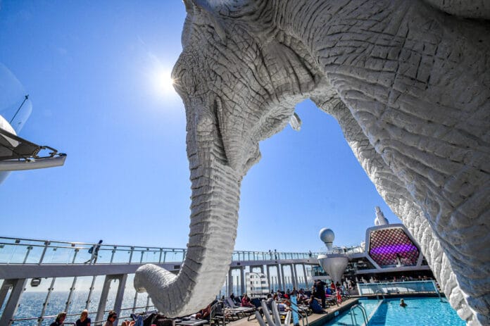 Der „Instagrammable Moment“ an Bord ist eine Skulptur des französischen Künstlers Fabien Mérelle mit dem Titel „A l’Origin“. Eine ähnliche Skulptur des gleichen Künstlers ist unter dem Titel „Pentateuque“ bekannt. Der beliebteste Foto-Move: Die Pose des Elefantenträgers nachahmen und den geeigneten Blickwinkel suchen – schon hat man einen Elefanten auf dem Rücken.