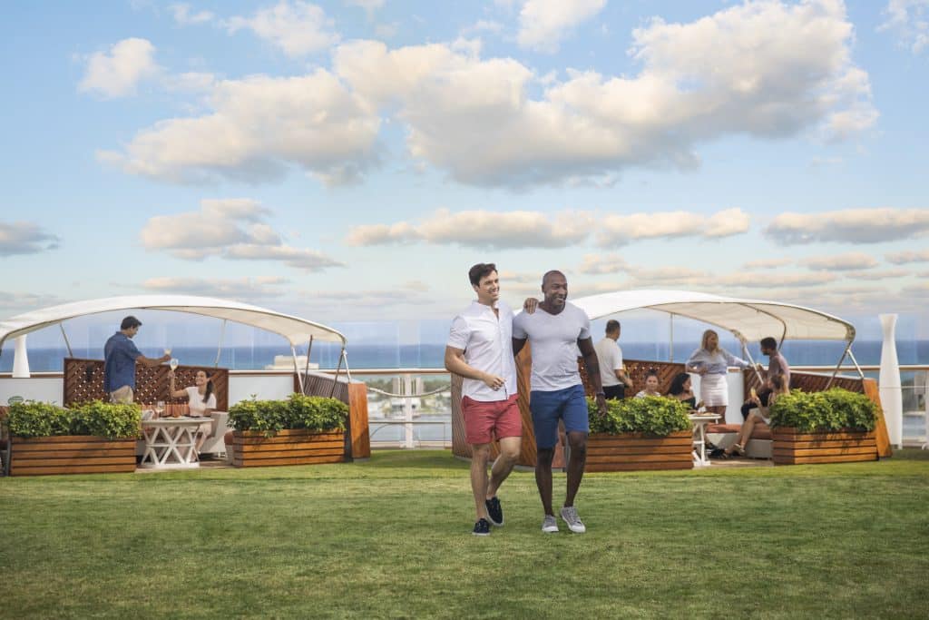 Für Gäste, die sich gerne im Freien aufhalten, bietet die Celebrity Eclipse eine mehr als 2.000 Quadratmeter große Fläche mit echtem Rasen. Dieser Lawn Club ist der perfekte Ort, um den Meerblick bei Live-Musik zu genießen, Sonne zu tanken, zu picknicken oder Filme zu schauen.