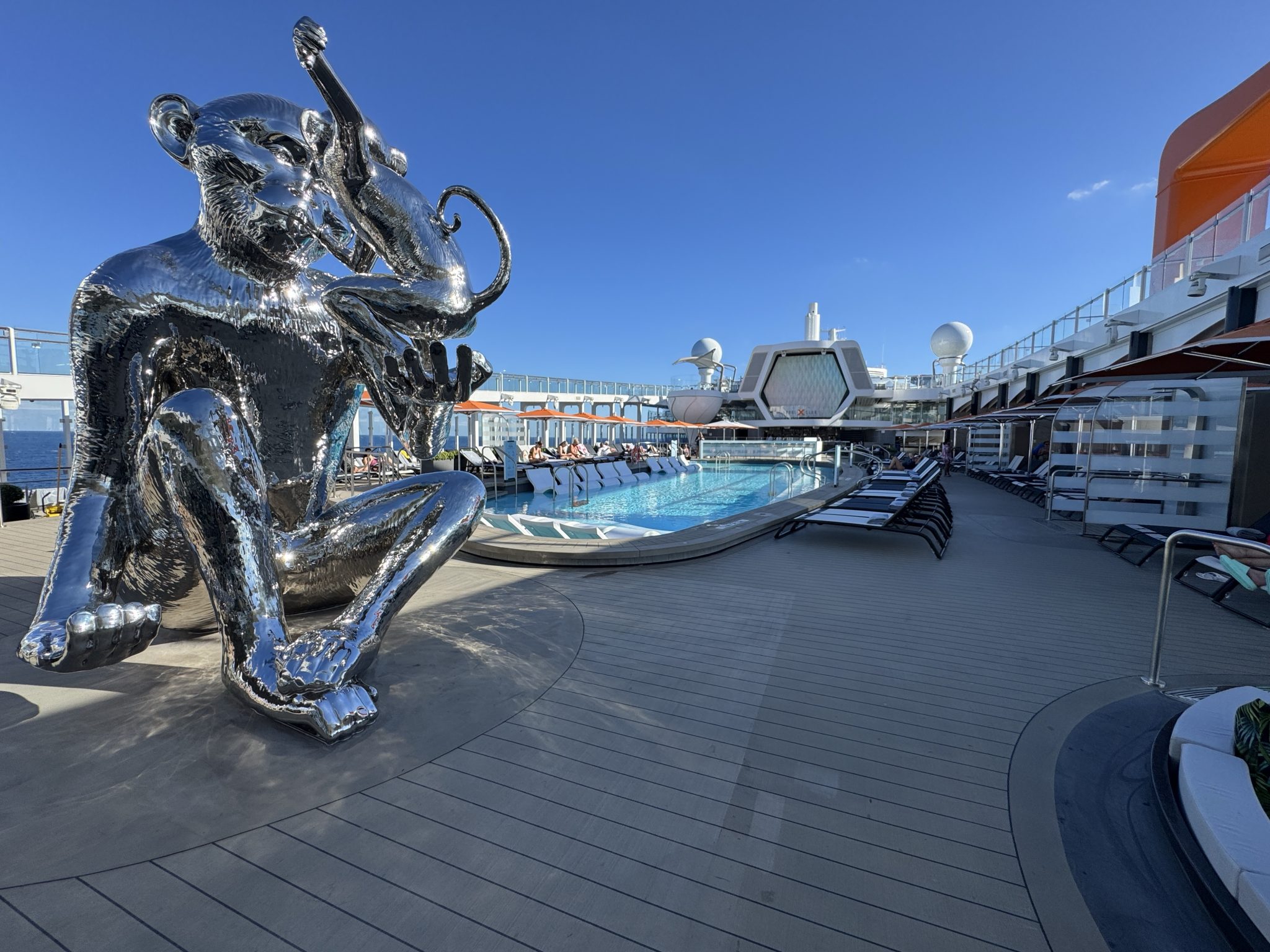 Ein charakteristischer Bestandteil jedes Schiffes der Baureihe sind auch die überdimensionalen Tier-Figuren auf dem Pooldeck. Auf der Celebrtiy Xcel sind Affen an Deck.
