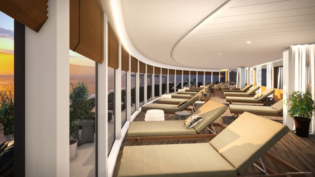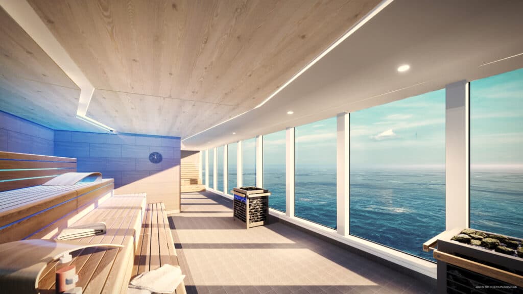 TUI Crui­ses erwei­tert das Well­ness-Ange­bot auf dem ach­ten Schiff, dem ers­ten der neu­en InTUI­ti­on-Schiffs­klas­se. Die Gäs­te dür­fen sich auf ein­zig­ar­ti­ge Ent­span­nungs­mög­lich­kei­ten freu­en, dar­un­ter eine exklu­si­ve Fass-Sau­na mit atem­be­rau­ben­der Aus­sicht auf dem Außen­deck und eine Käl­te­kam­mer für Kryo­the­ra­pie-Anwen­dun­gen.