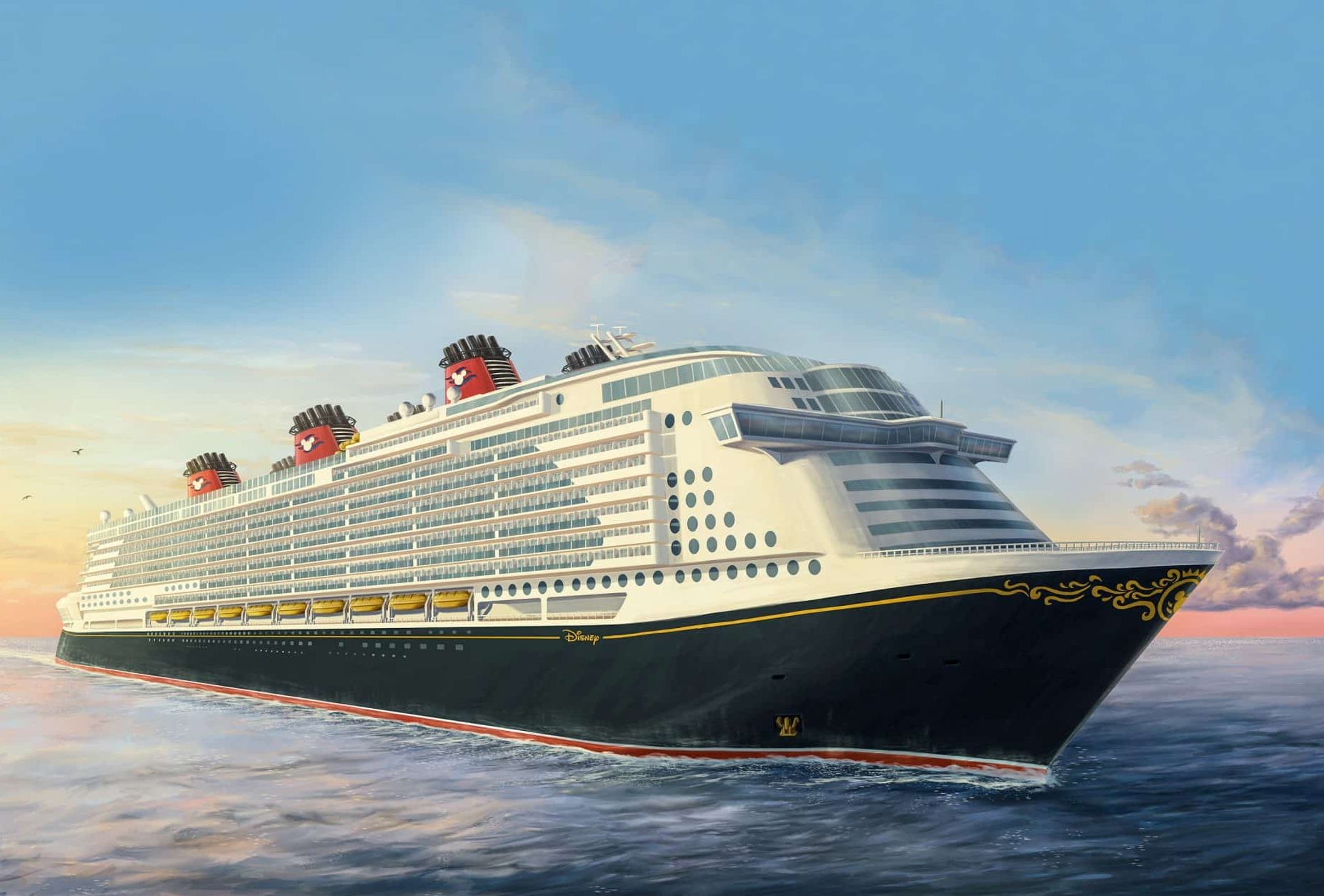 Das neue Schiff, das außer­halb der Ver­ei­nig­ten Staa­ten behei­ma­tet sein wird, soll zukünf­tig  Dis­ney-Erleb­nis­se biten, die Dis­ney Crui­se Line aus­zeich­nen. Das Äuße­re des Schif­fes wird in den von Mickey Mou­se inspi­rier­ten Far­ben der Flot­te gehal­ten sein und mit drei cha­rak­te­ris­ti­schen roten Dop­pel-Schorn­stei­nen kom­plet­tiert.