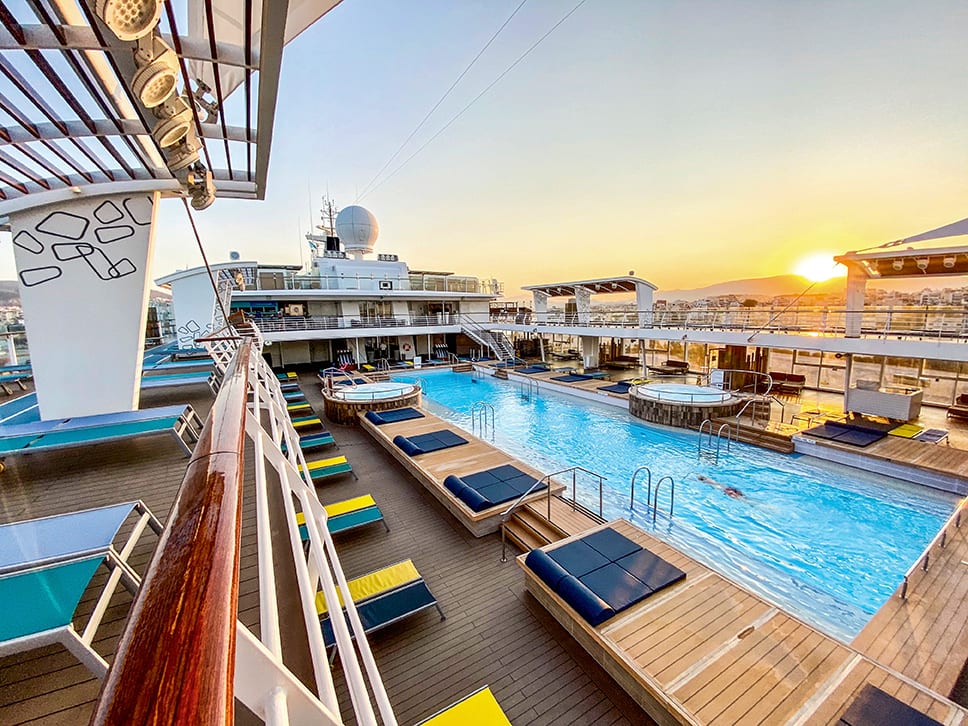 Die Sonne schiebt sich über Athens Bergrücken und erweckt die Stadt nach und nach zum Leben. Von Bord geht es nur gegen Vorlage eines Ausflugtickets. Aber auch in der aktuellen Situation können die Passagiere je nach Saison aus einem recht umfangreichen Ausflugsprogramm wählen. Von der klassischen Panoramafahrt mit Akropolis, einen Strandausflug bis hin zum Kanal von Korinth mit seinen beeindruckenden Schluchten. Hinzu kommen die beliebten E‑Bikes (75 Euro), E‑Scooter (49 Euro) und Fahrradtouren (59 Euro), die vom Hafen bis zum kulturellen Zentrum Athens führen.