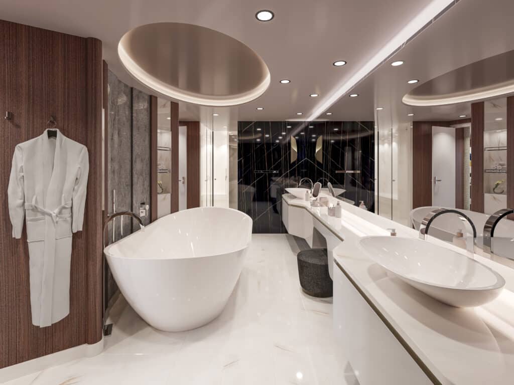„Jedes Design-Ele­ment unse­rer Owner’s Resi­dence zeugt von Lie­be zum Detail. Wir arbei­ten mit bekann­ten Mar­ken zusam­men, um unse­ren Gäs­ten ein Erleb­nis zu bie­ten, das sei­nes­glei­chen sucht. Sofas und Stüh­le stam­men bei­spiels­wei­se von Desi­gnern wie Knoll und Mol­te­ni & C, die Out­door-Möbel sind von Manut­ti. Das Licht­sys­tem wur­de von Astep ent­wor­fen und der luxu­riö­se Dop­pel­wasch­tisch im Bad besteht aus wert­vol­lem Cala­cat­ta-Mar­mor. Durch all die­se Details ent­steht dem­zu­fol­ge eine ele­gan­te und ent­spann­te Luxus-Atmo­sphä­re im euro­päi­schen Stil“, sagt Jason Geli­neau, Head of Pro­duct bei Explo­ra Jour­neys.