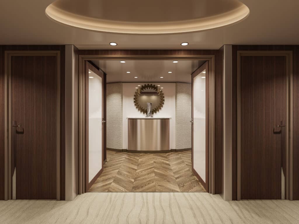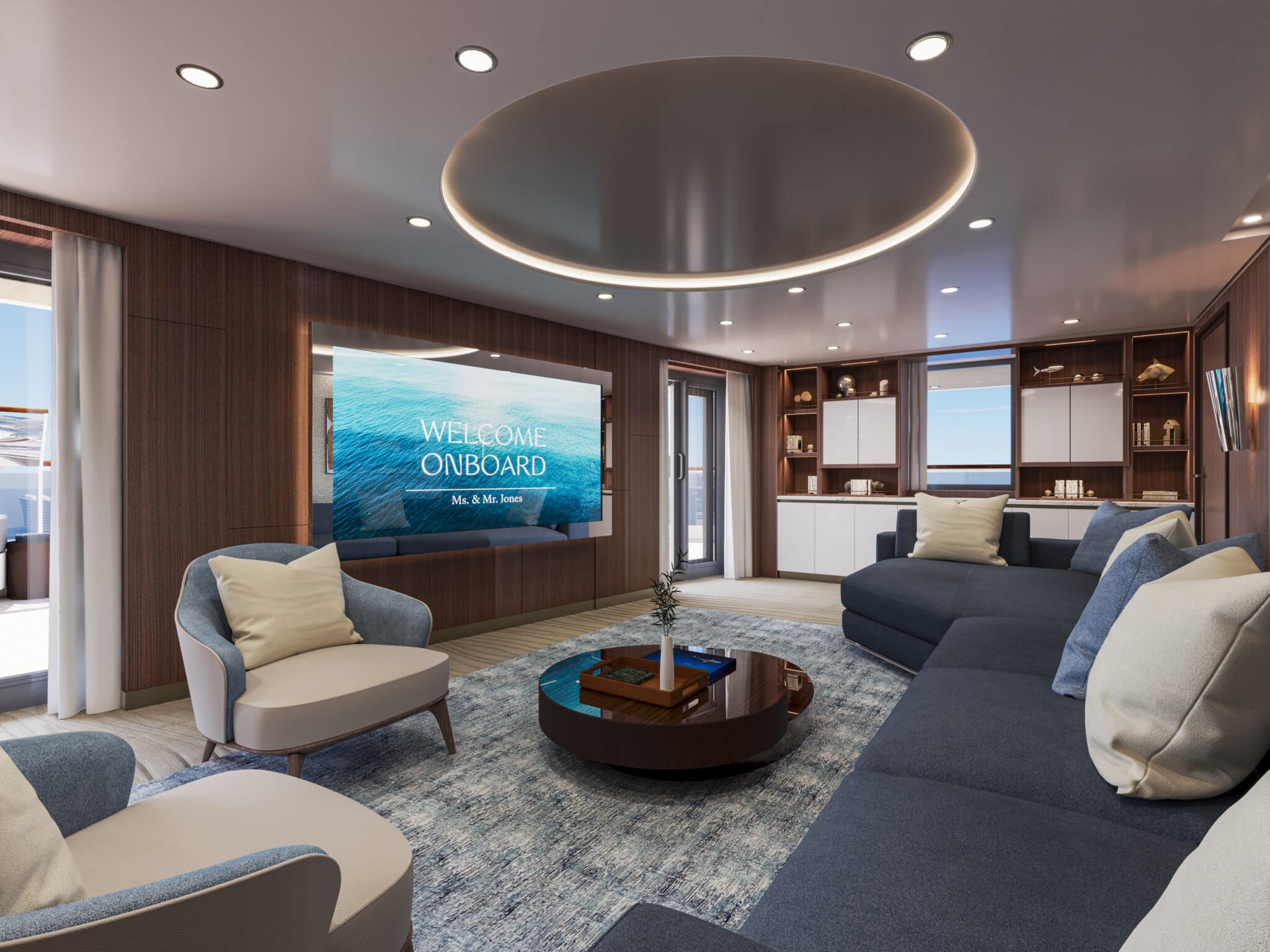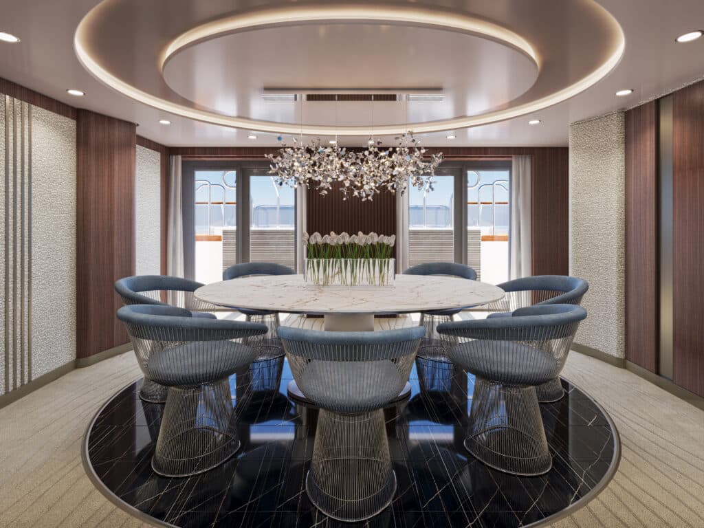 Explo­ra Jour­neys zeigt erst­mals das Design der Owner’s Resi­dence an Bord der Explo­ra I. Die Luxus-Suite beher­bergt den größ­ten Wohn­raum an Bord.