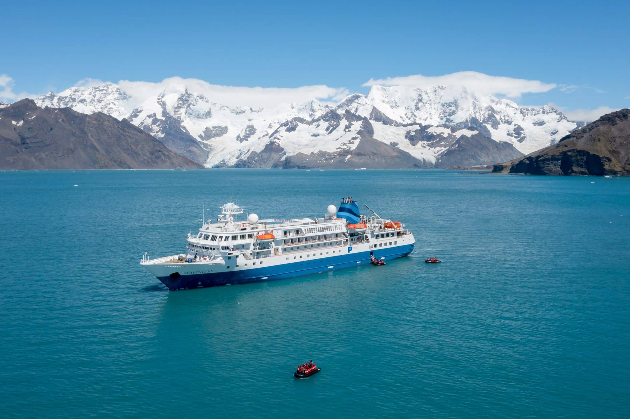 Die Sea­ven­ture ist kon­zi­piert für Fahr­ten in pola­ren Regio­nen und mit der höchs­ten Eis­klas­se für Pas­sa­gier­schif­fe aus­ge­stat­tet. Zusätz­lich sind Anlan­dun­gen mit den 14 bord­ei­ge­nen Zodiacs mög­lich, um auch ent­le­ge­ne Buch­ten und klei­ne­re Häfen zu erkun­den.