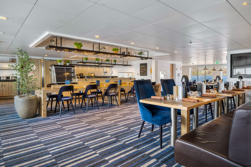 Neben der Ein­füh­rung des Bryg­ga Bis­tro auf Deck 5 wur­den auch Auf­ent­halts­räu­me wie die Explo­rer Lounge & Bar neu gestal­tet. Das Bryg­ga ergänzt das tra­di­tio­nel­le Restau­rant­an­ge­bot und bie­tet eine fle­xi­ble Alter­na­ti­ve für die Zeit vor oder nach den Land­gän­gen. In der Explo­rer Lounge & Bar wer­ten neue Sitz­ge­le­gen­hei­ten und ein fri­sches Design das Ambi­en­te auf. In der Bar wer­den neue Signa­tu­re-Cock­tails ange­bo­ten.
