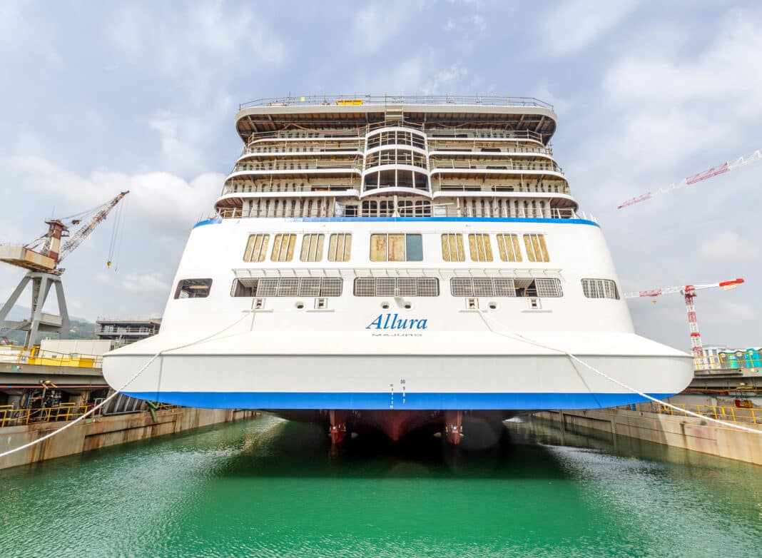 Die Allu­ra, das zwei­te Schiff der A‑Klasse von Ocea­nia Crui­ses, wur­de in der Fin­can­tie­ri-Werft in Ses­tri Ponen­te erst­mals zu Was­ser gelas­sen und anschlie­ßend zum Aus­rüs­tungs­kai gebracht. Damit beginnt der Innen­aus­bau der Gäs­te­be­rei­che des neu­en Schif­fes, das maxi­mal 1.200 Gäs­ten Platz bie­ten wird.