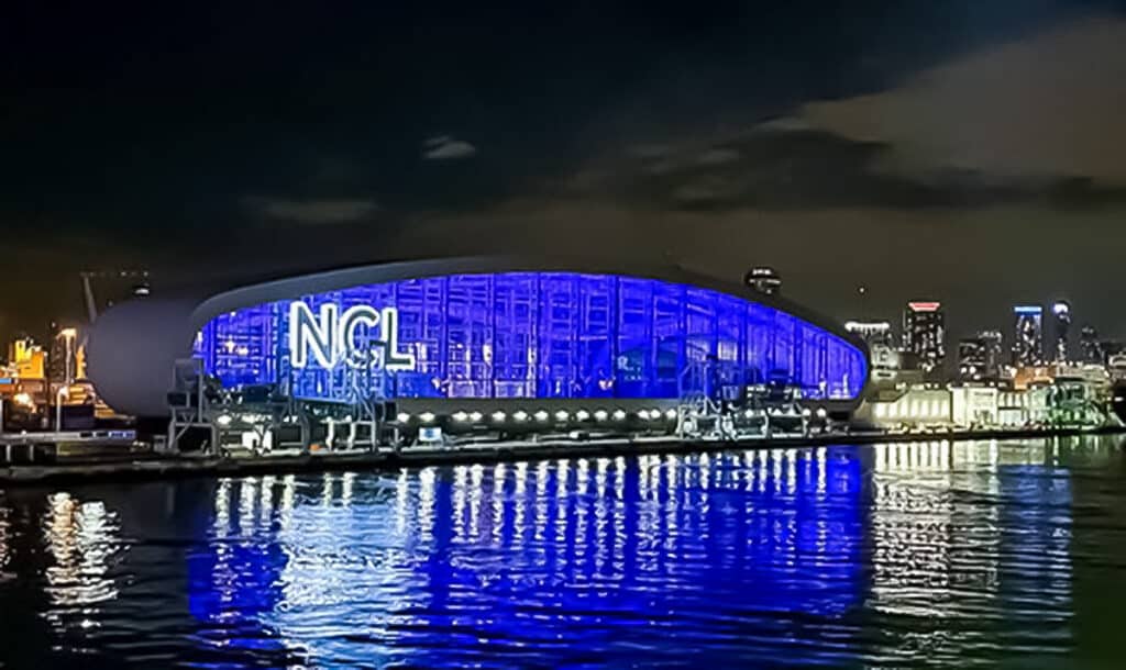 Sie dankte den Reedereien Norwegian Cruise Line und Royal Caribbean für die Beleuchtung der Terminals im Namen des Friedens und der Einigkeit.
