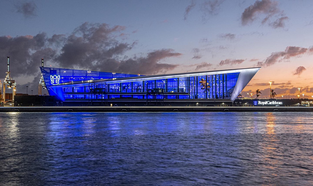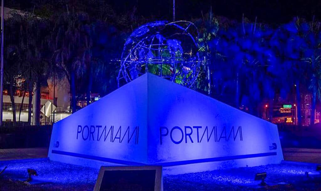 Solidarität mit Israel: Der Port of Miami ließ vergangene Nacht Cruise Terminals in den Nationalfarben blau und weiß erleuchten.