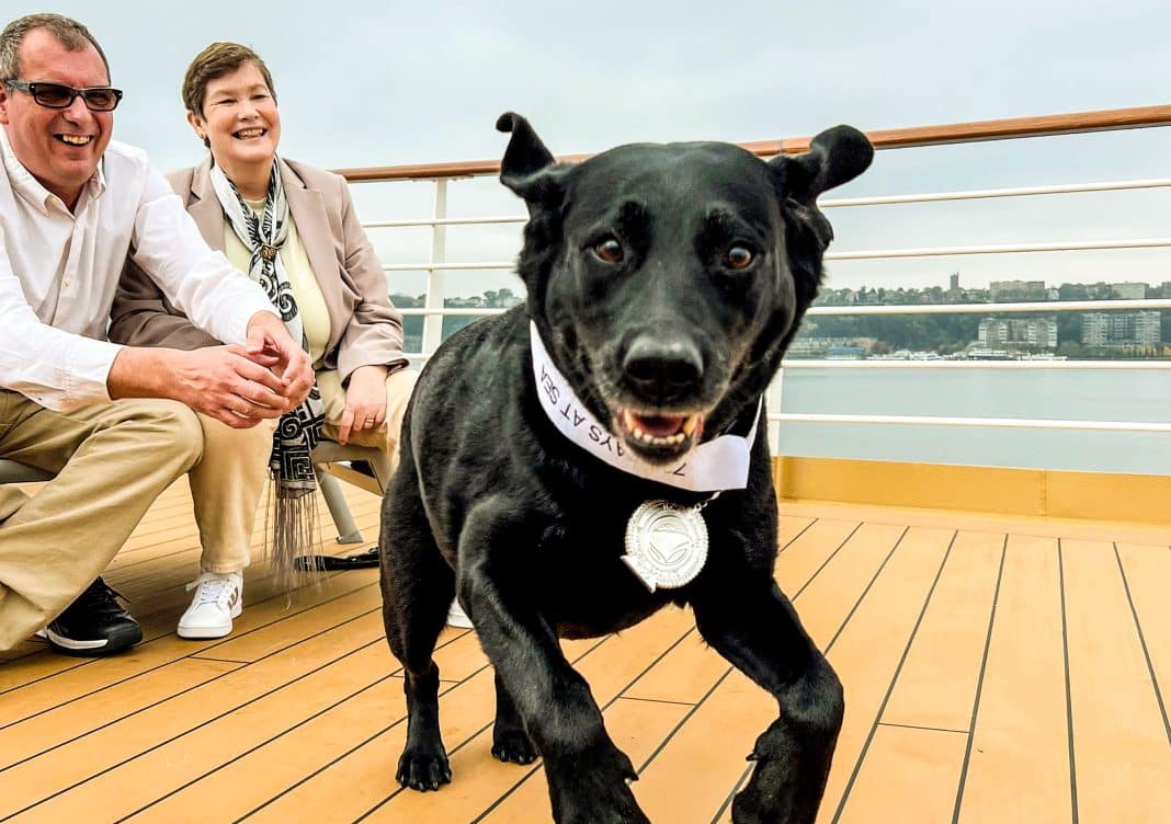 Joska, eine zehnjährige schwarze Labrador-Retriever-Hündin, ist der erste Begleithund, der zusammen mit seinen Besitzern Cornelius und Cornelia Marinussen 700 Kreuzfahrttage an Bord von Schiffen der Holland America Line verbracht hat.