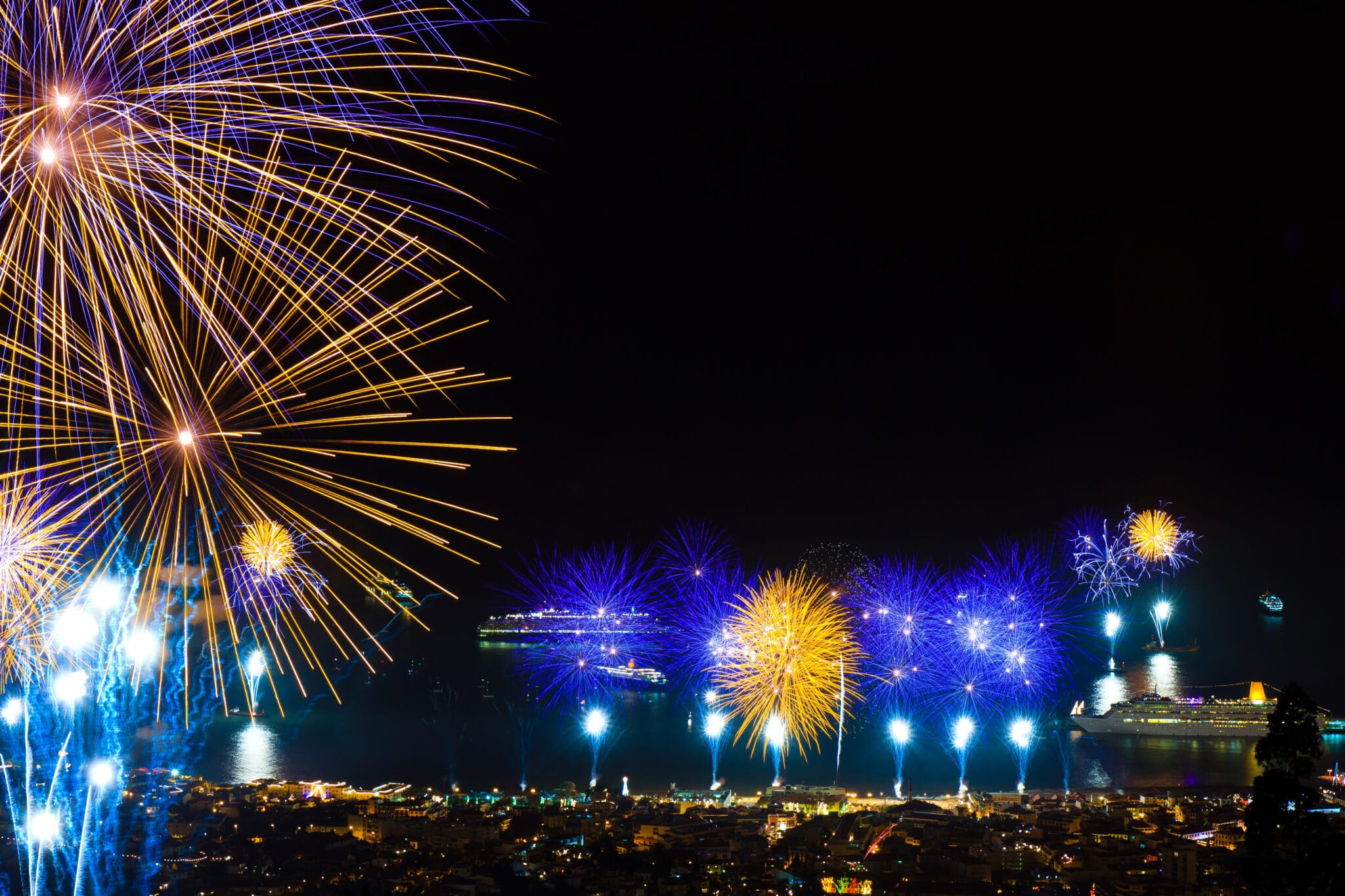 Silvester an Bord eines Kreuzfahrtschiffes zu feiern ist besonders. An zwei reizvollen Hotspots auf der Welt treffen sich mehrere Schiffe. In der Bucht von Funchal auf Madeira liegen zum Jahreswechsel elf und an der Copacabana in der brasilianischen Metropole Rio de Janeiro liegen sechs Kreuzfahrtschiffe.