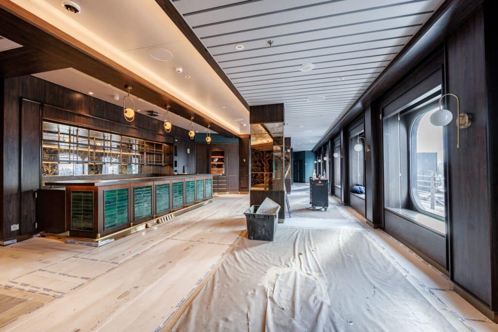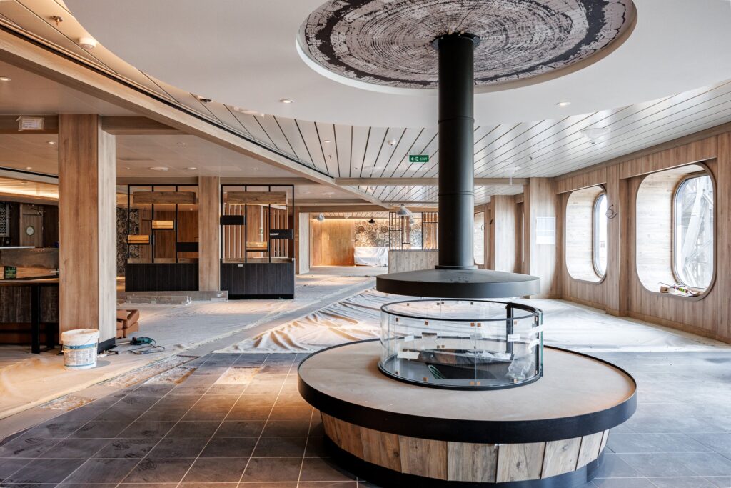 „Ihr habt gefragt: ‚Wie geht’s auf der Mein Schiff Relax in der Werft vor­an?‘ Wir haben aktu­el­le Fotos besorgt!“, heißt es in dem Pos­ting. Zu sehen sind dem­nach das „Cha­let“, das neue Exklu­siv-Restau­rant mit alpen­län­di­scher Küche. Gestal­tet sind die Wän­de und Decken mit hel­lem Holz, das ech­te „Hüt­ten-Atmo­sphä­re“ aus­strah­len soll.