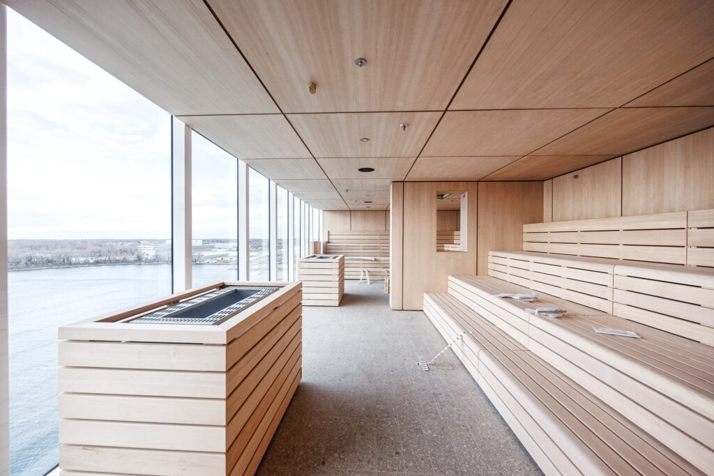 Den Vor­ge­schmack kom­plet­tiert eine Auf­nah­me der Sau­na im Well­ness-Bereich der Mein Schiff Relax. Teil des Erho­lungs­be­rei­ches an Bord des Neu­baus ist eine exklu­si­ve Fass-Sau­na mit atem­be­rau­ben­der Aus­sicht auf dem Außen­deck und eine Käl­te­kam­mer für Kryo­the­ra­pie-Anwen­dun­gen. Der groß­zü­gi­ge SPA- und Well­ness­be­reich ver­spricht noch mehr Wohl­fühl-Momen­te. Hier fin­den sich eine Hori­zontsauna, ein Dampf­bad, Kräu­ter- und Salz­saunen sowie ein neu­er Ruhe­be­reich mit Blick auf das Meer. Ein groß­zü­gi­ger Ter­ras­sen­be­reich ergänzt das Ange­bot.
