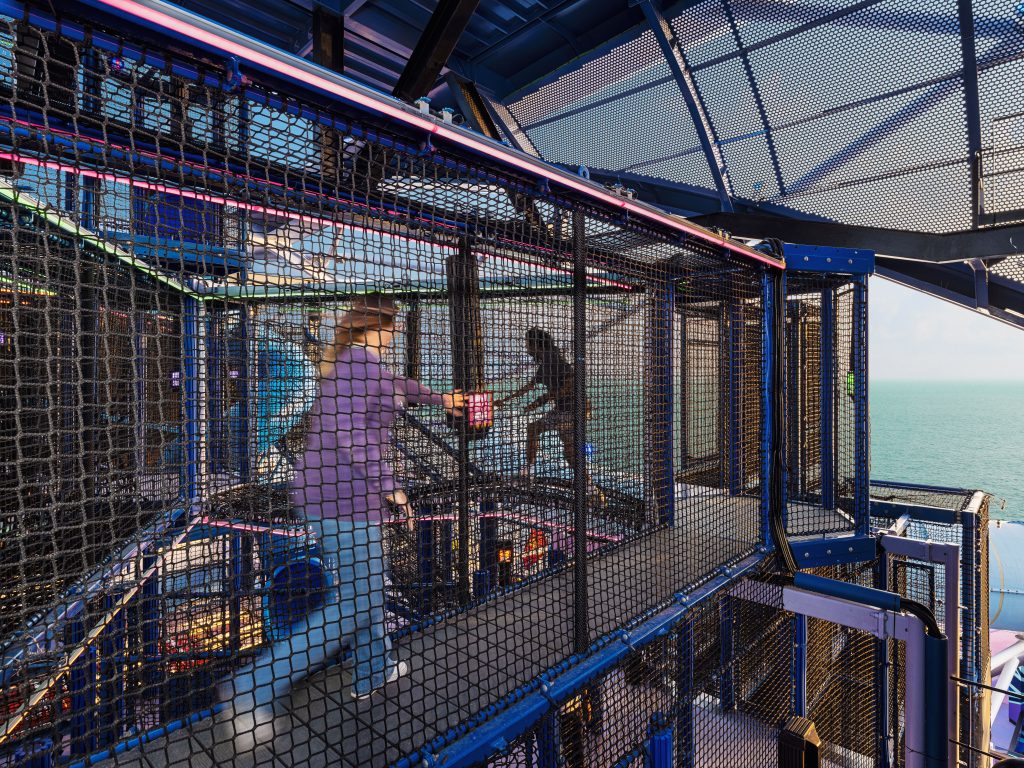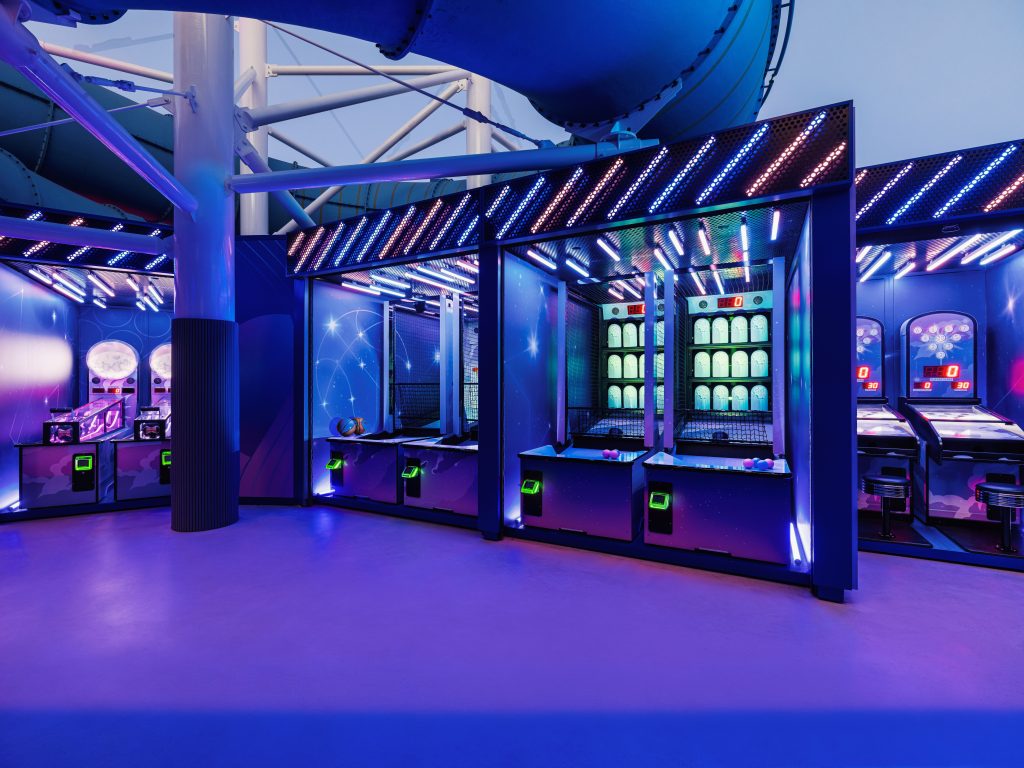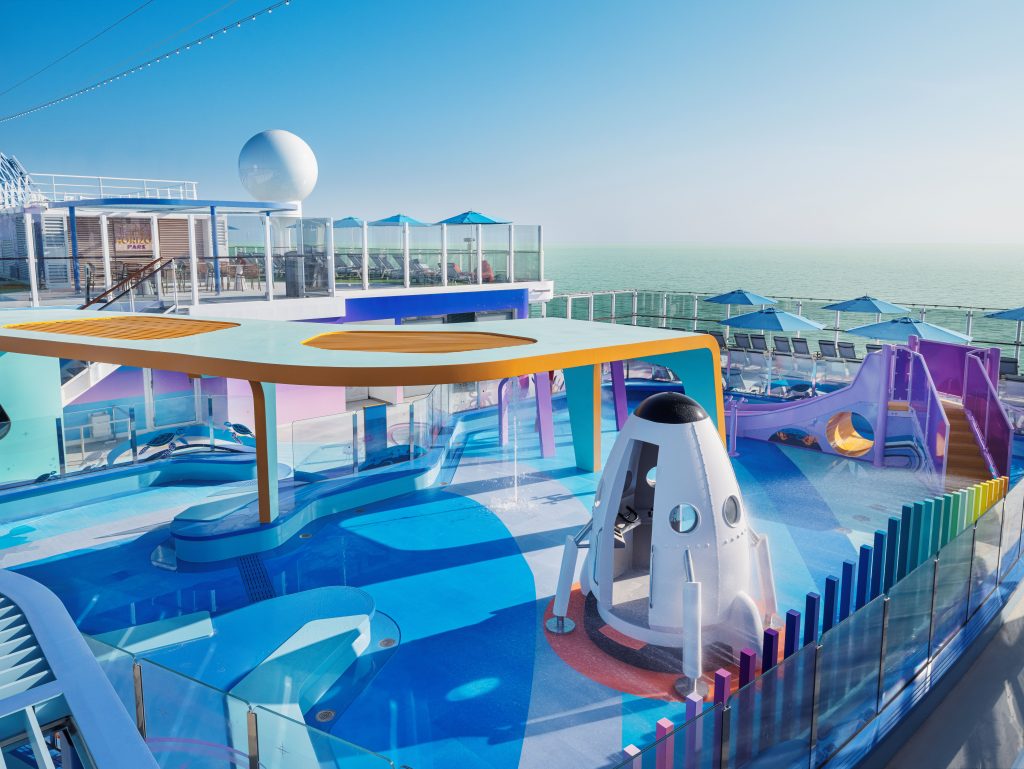 Darüber hinaus präsentiert das Schiff auf den oberen Decks neue Erlebnismöglichkeiten, die speziell mit Blick auf generationenübergreifende Familienreisen konzipiert wurden, darunter den Luna Midway, einen Outdoor-Bereich im Stil eines Vergnügungsparks mit von Jahrmärkten inspirierten Spielen, den Moon Climber, einen mehrstöckigen Hindernisparcours für Kinder und Erwachsene; sowie den Horizon Park, einen Freizeitbereich mit klassischen Rasenspielen.