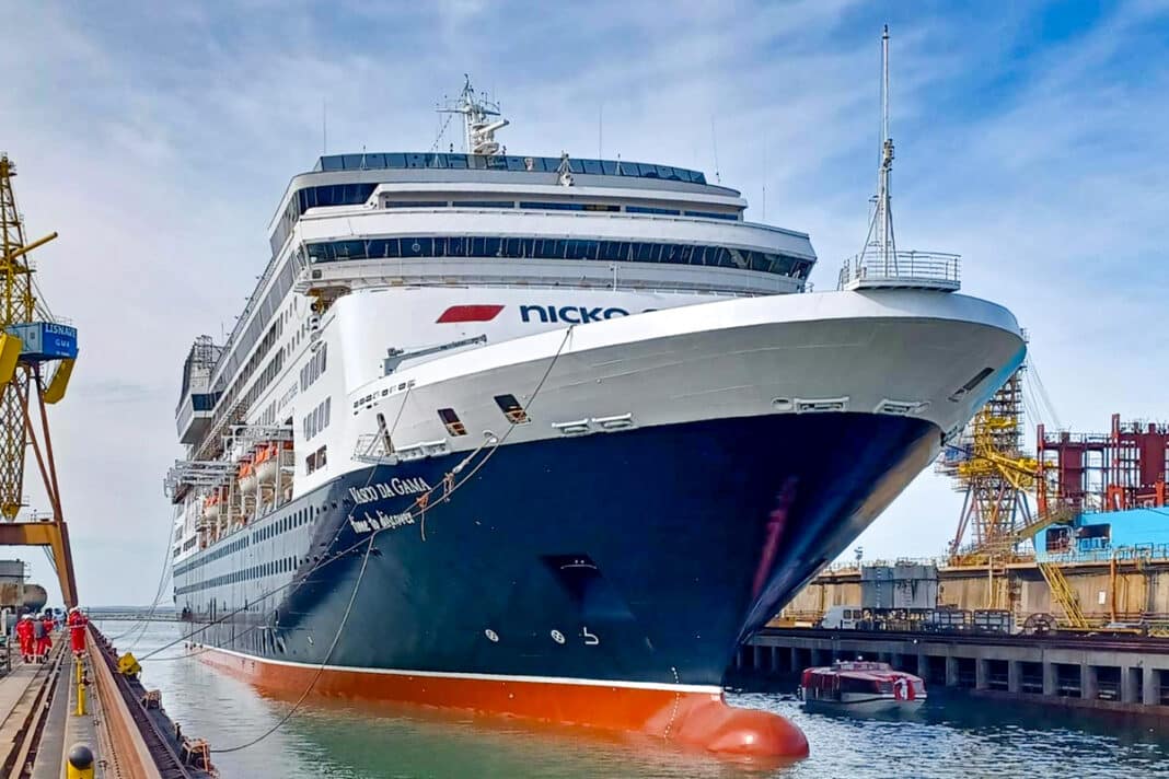 Die Vas­co da Gama von Nicko Crui­ses hat nach einem plan­mä­ßi­gen Werft­auf­ent­halt ihre ers­te Kreuz­fahrt ange­tre­ten. Nach umfang­rei­chen Reno­vie­rungs- und War­tungs­ar­bei­ten in einer por­tu­gie­si­schen Werft ver­ließ das Schiff am Sams­tag, dem 11. Mai 2024, mit rund 1.000 Gäs­ten an Bord den Hafen von Lis­sa­bon.