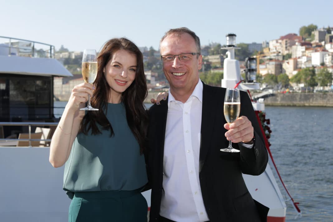 Unterstützt wird Yvonne Catterfeld bei der Taufe von den beiden Jugend-Botschafterinnen Clara Katharina Eichler (14) und Enna Marie Kate Sandmann (10). Die Töchter der beiden A‑Rosa Geschäftsführer stehen symbolisch für das A‑Rosa typische Familienpublikum sowie die Bedeutung des Themas Nachhaltigkeit für die kommenden Generationen.